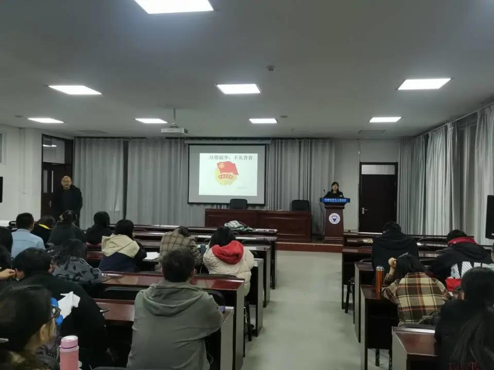 团委书记孙研老师以《珍惜韶华,不负青春》为主题,通对集体学唱团歌《光荣啊,中国共青团》和讲解共青团发展史,让同学们深刻领会了共青团是党的助手和后备军,并结合新时代青年的使命和担当,引导团员青年们在校期间要珍惜青春时光,练就过硬本领,与时代同步伐、共进步。