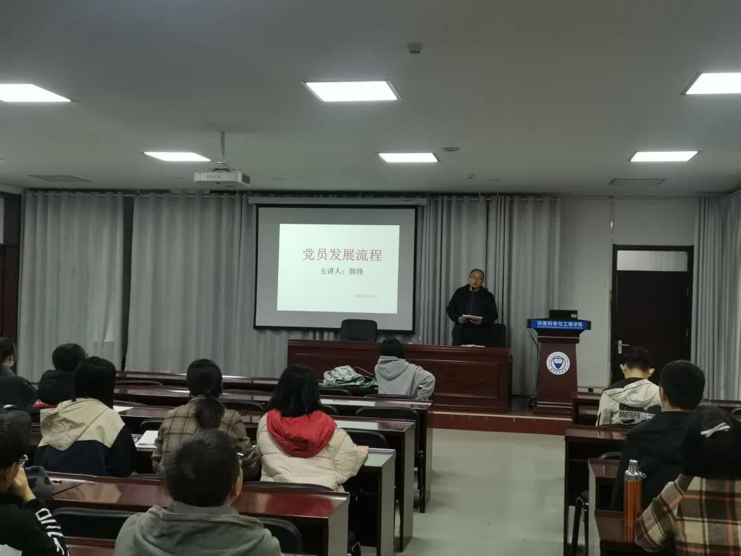 给排水研究生党支部书记韩锋老师以《党员发展流程》为主题,就党员发展的每一个流程给在座的全体学员做了较为全面的介绍,分别从申请入党、入党积极分子的确定和培养教育、发展对象的确定和考察、预备党员的吸收、预备党员的教育考察和转正等方面做了详细的讲解。