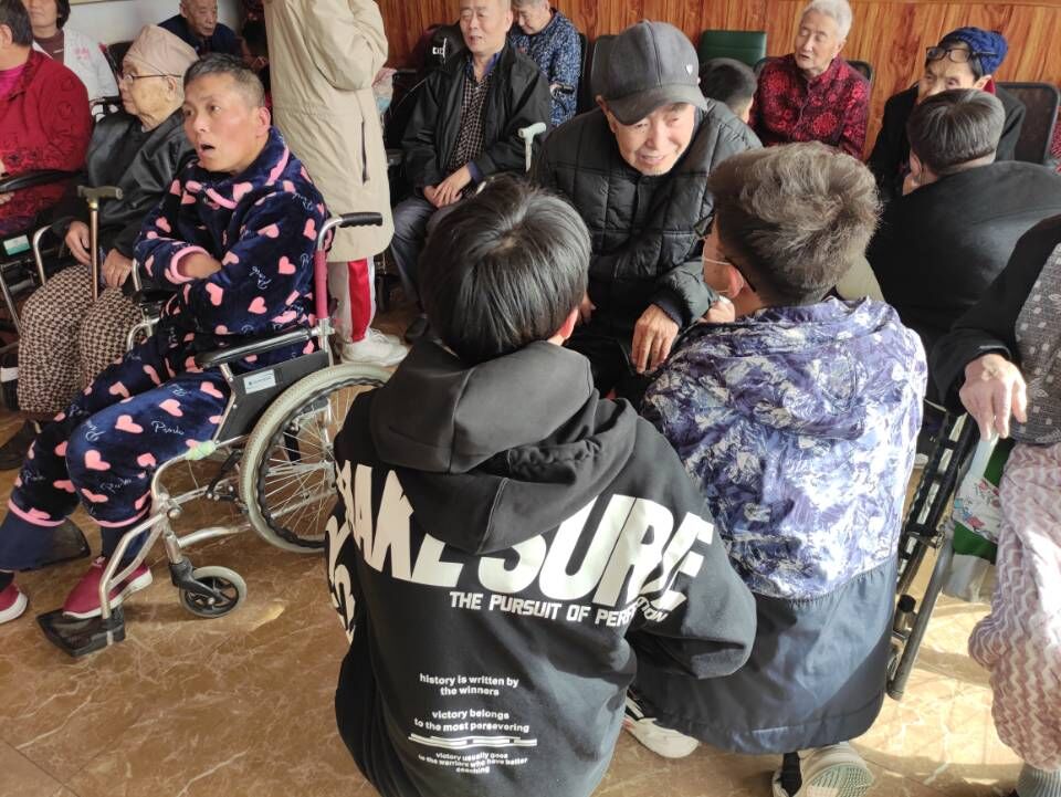 下午两点多,同学们兴致勃勃地带着特地为老人准备的水果,奶类以及营养品来到养老院,在与经理简单沟通后,我们共同合影,且各自分配了任务,首先,我们为老人们表演了提前准备的唱歌,跳舞等诸多节目;表演结束后,我们为长辈按摩,陪他们聊天以及清洁养老院卫生。其中,我们一起合唱了《团结就是力量》,《歌唱祖国》,《学习雷锋好榜样》等诸多红色歌曲,唱出了对老人的真诚祝福。经过一系列活动,原本寂静的养老院变得热闹起来,现场气氛极其融洽。