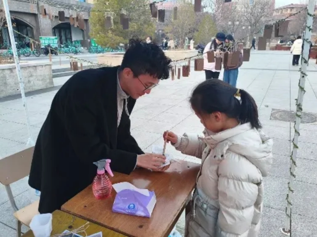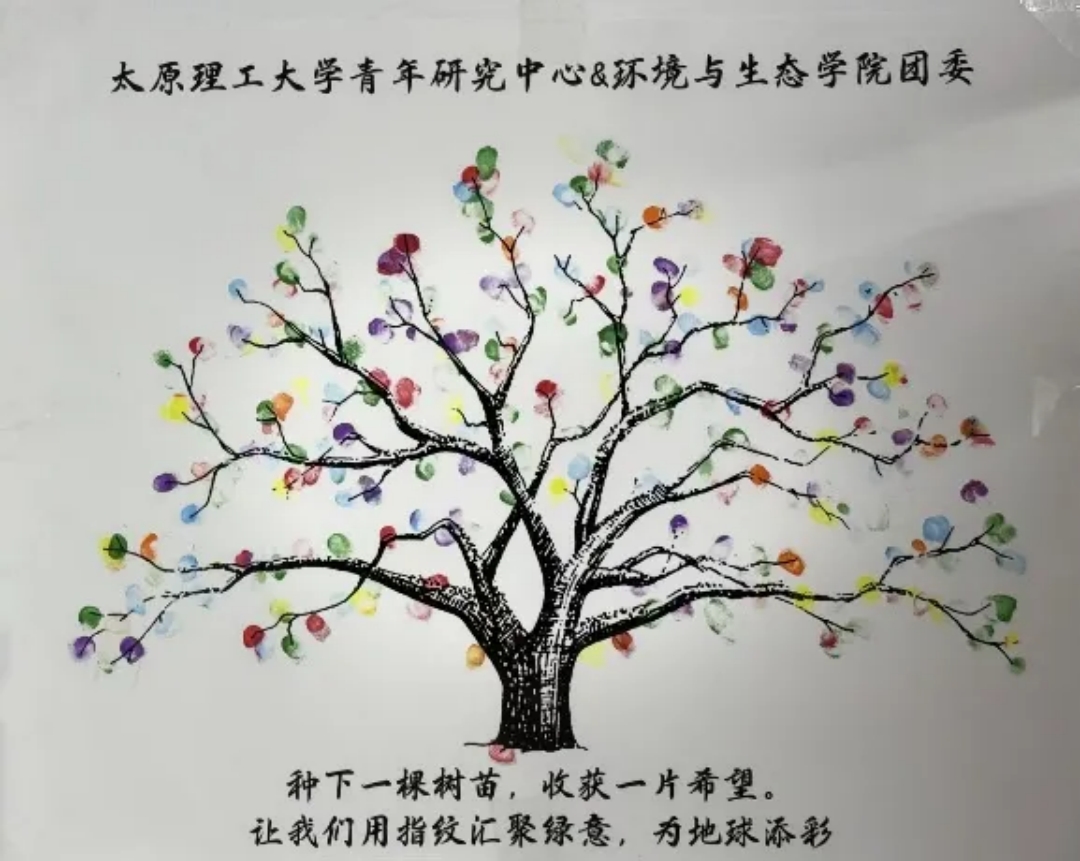 粗壮的树干犹如生生不息的自然,师生们轻蘸颜料,将带着体温的指纹点在枝桠间,以独特的方式为大树“添叶”。随着时间的流传,一枚枚饱含热情与期待的指纹在画板上不断汇聚,共同催生出一棵枝繁叶茂、生机勃勃的大树。拥抱春天播种绿色