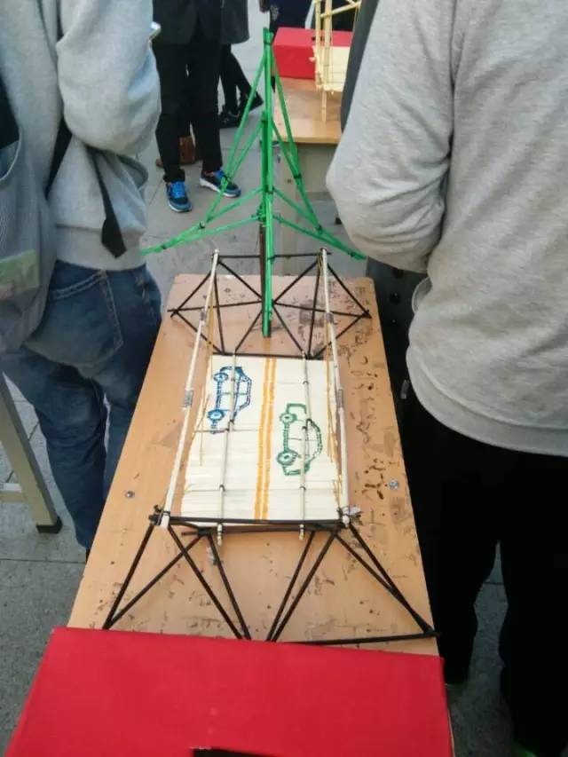 最后进行了筷子搭桥比赛,各公司比赛队伍用筷子和皮筋在有限时间内搭建一座桥,最后由观众投票。在众多作品中,我们公司作品独树一帜,桥两边由涂成黑色的筷子搭成,其中一边还有绿色筷子搭成的树, 而桥面上画了两辆小汽车。对比其他公司作品,我们公司作品显然更具创意,更用心。