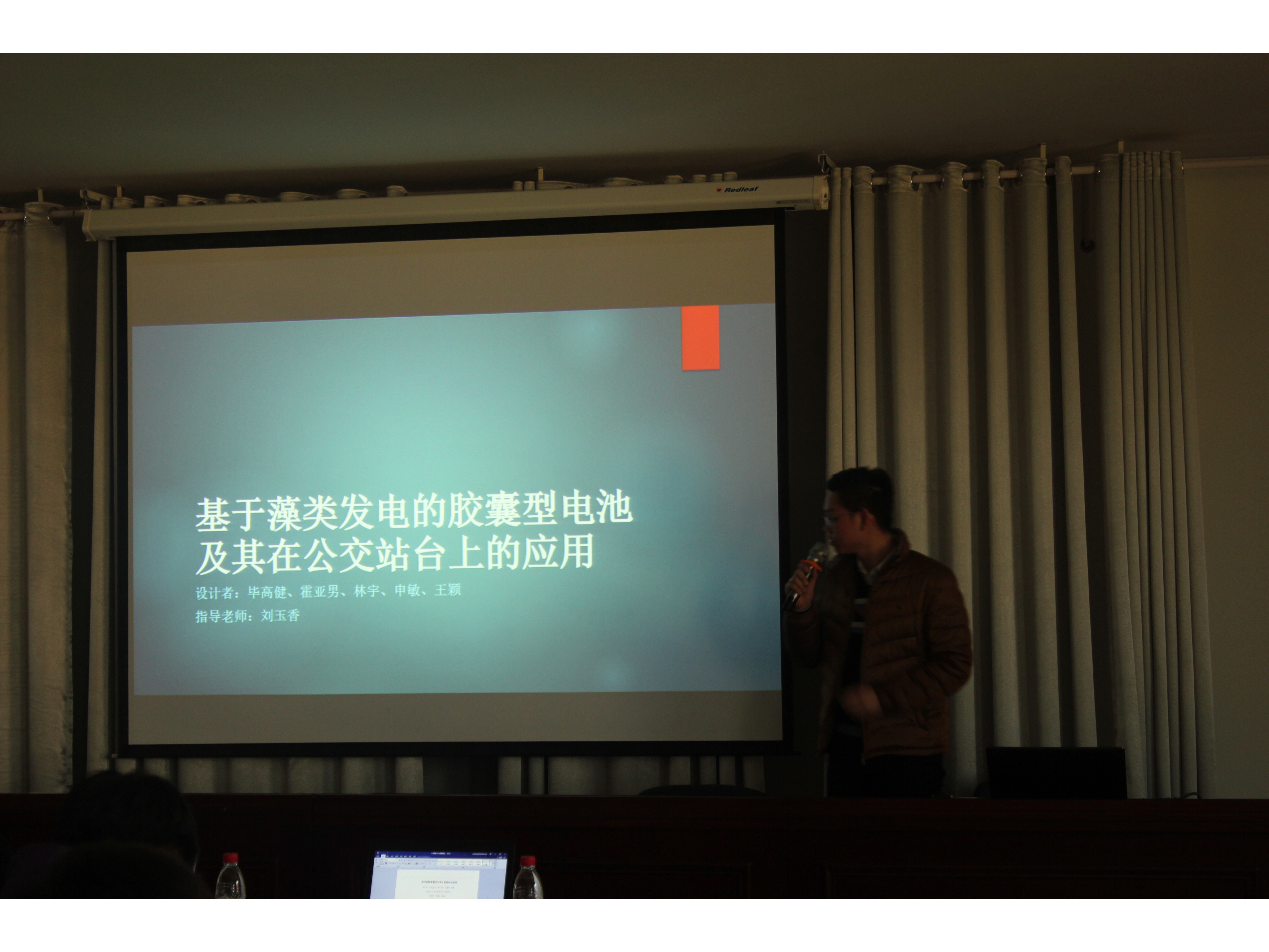 第五组设计的一种藻类电池,是从减少目前发电方式的污染与能耗的角度出发而设计的,并且他们使用的藻类也在培育中。