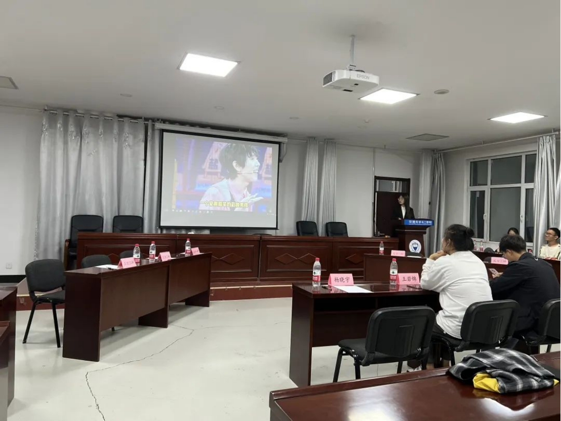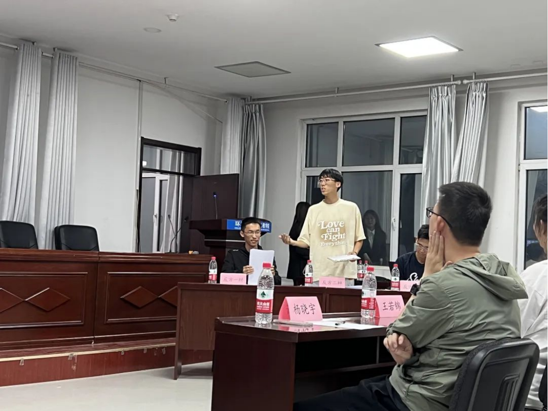 三位评委分别是杨晓宇学长,王若锦学姐,张金鑫学长。三位评委对场上辩手的发言进行点评,并为辩手提供建议。