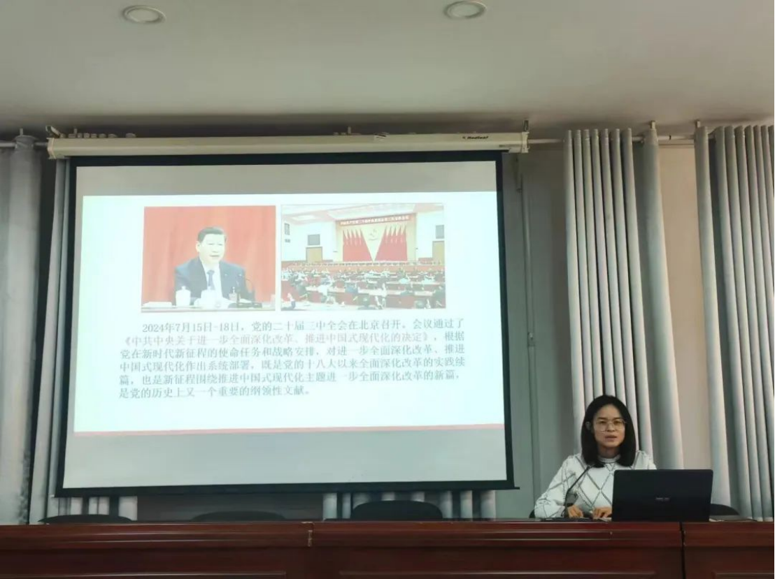 会议最后,全体员工干部集体学习党的二十届三中全会精神,从深刻认识党的二十届三中全会的主题和意义、深刻认识进一步全面深化改革的指导思想、总目标和重大原则、全面准确理解《决定》提出的进一步全面深化改革重大举措三个方面进行了系统学习。
