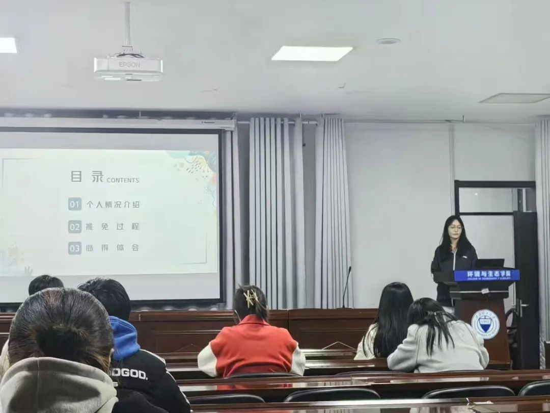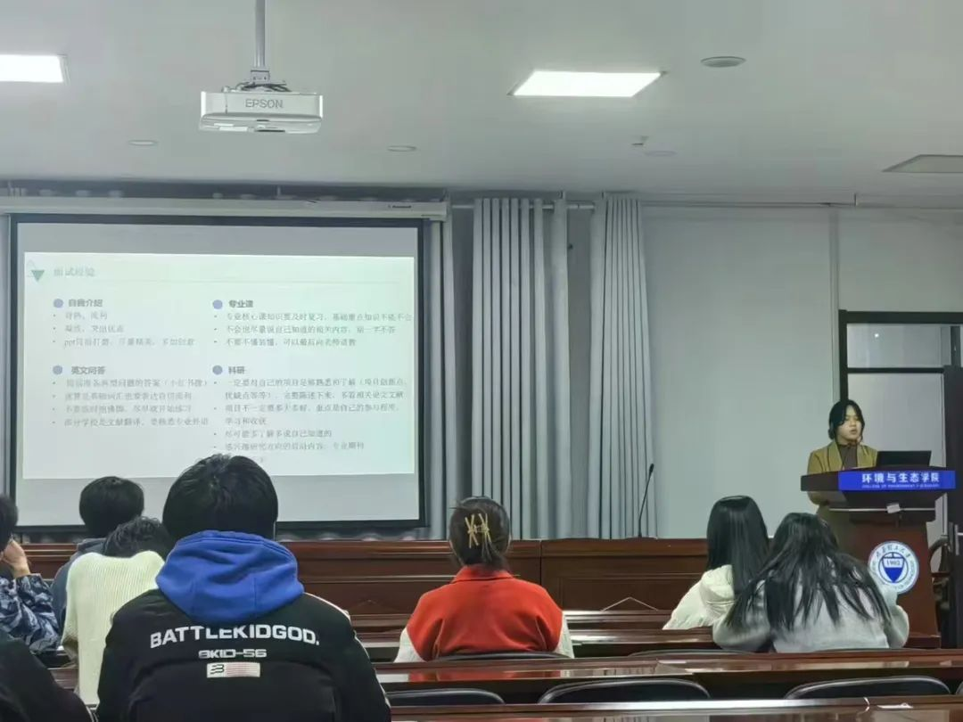 席萌蕊从自我定位、推免流程、面试准备和心态调整等方面分享了保研经验。她的讲述内容丰富、清晰简洁,让同学们受益匪浅。