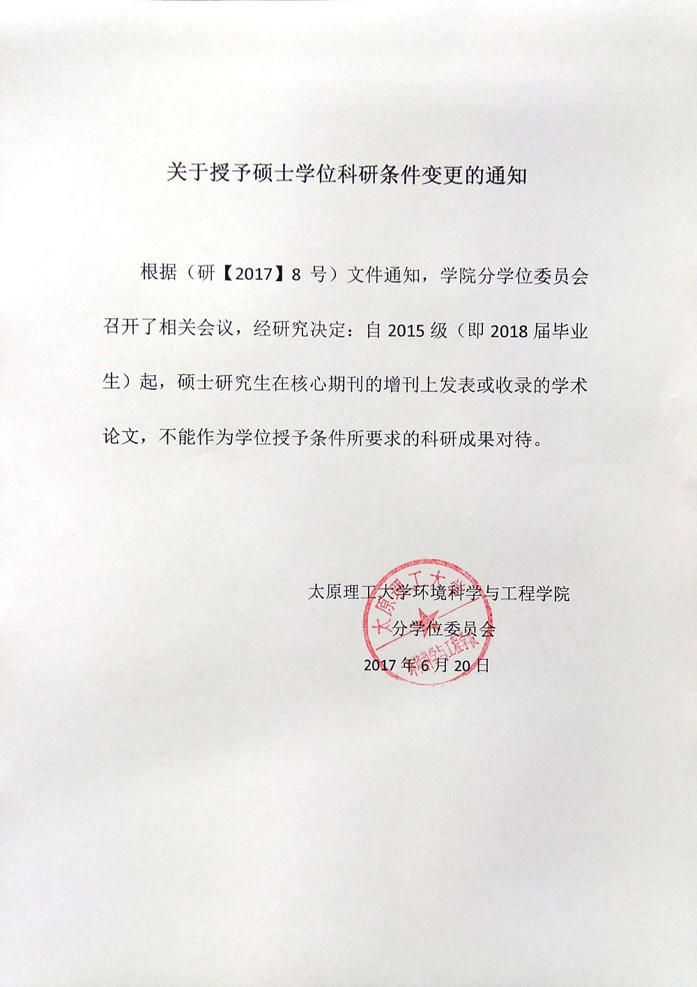 关于授予硕士学位科研条件变更的通知