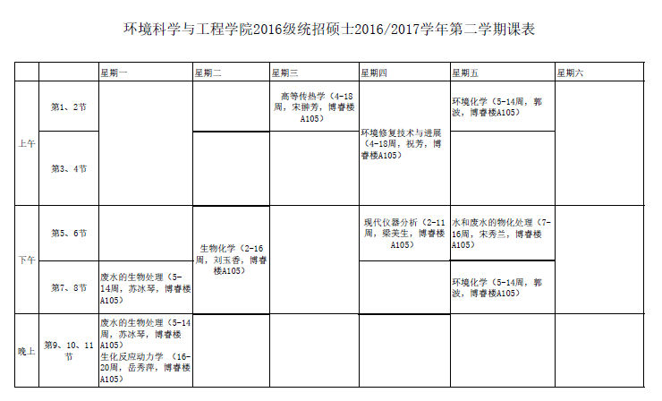关于公布PA视讯集团官网2016级统招硕士2016/2017学年第二学期课表的通知