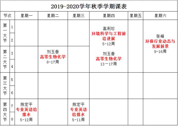 2019-2020学年秋季学期 2019级研究生课表