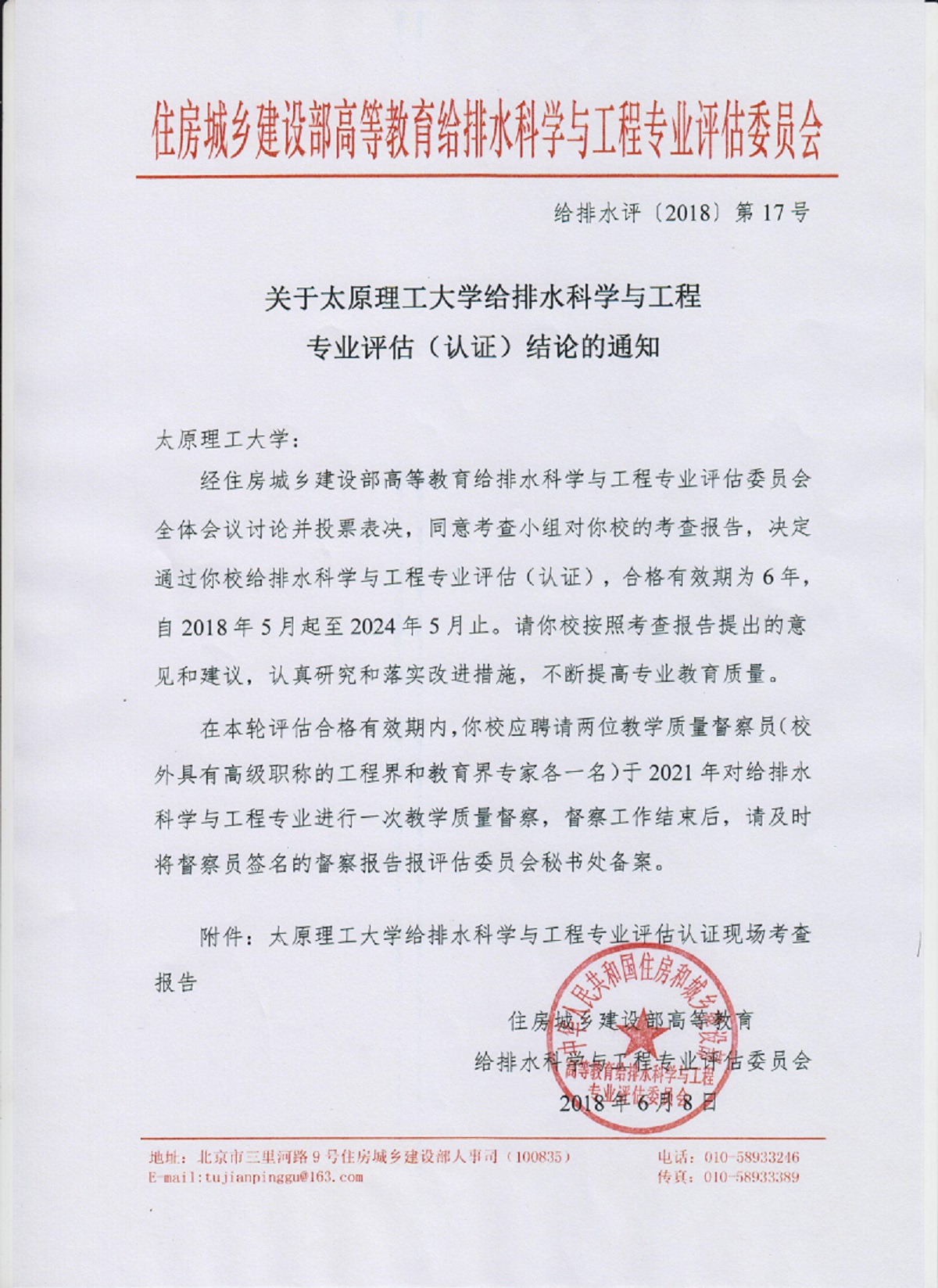 公司给排水科学与工程专业2013年5月首次评估通过,今年是该专业第二次评估(认证)。