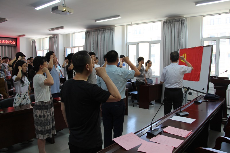最后,张国兴带领全体党员在党旗前重温入党誓词,教育广大党员不忘入党初心,牢记党员使命。