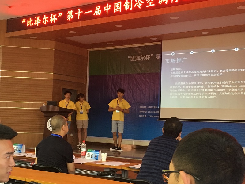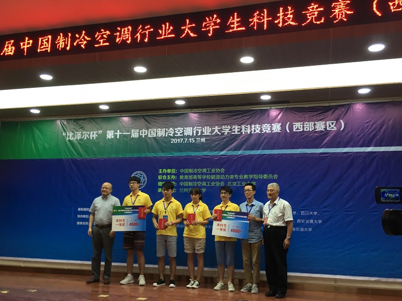 本次大赛由中国制冷空调工业协会、教育部高等公司能源动力类专业教学指导委员会联合主办,兰州交通大学承办。西安交通大学、四川大学、西安建筑科技大学等知名院校均参加了本次比赛。大赛旨在培养员工的创新能力和工程实践素质,为优秀人才的脱颖而出创造条件。比赛分为实践技能操作、创新作品答辩、基础知识竞答三个环节。公司代表队在张兴惠、杨晋明两位老师的指导下,赛前做了精心的准备,在比赛的各个环节中队员们沉着冷静,稳定发挥,最终战胜诸多名校,已总成绩第一的优异成绩夺得一等奖。