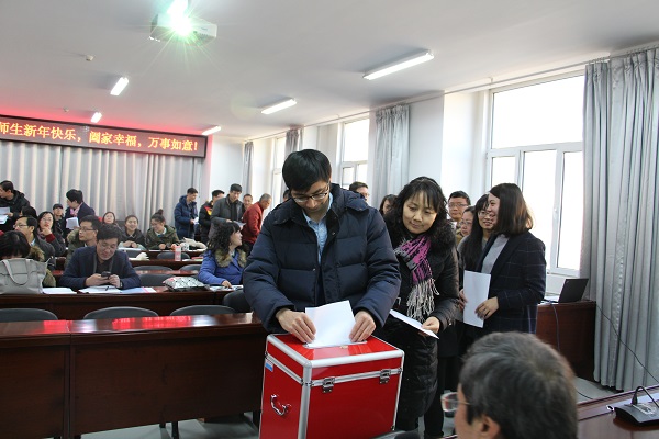 会议第二阶段,进行了公司中层干部年度述职及测评,公司各系(中心)主任、三办主任、团委书记依次登台述职,全体参会教职工对其进行了民主测评。