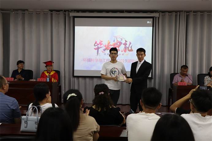 2019届毕业生图书捐赠代表向公司捐赠图书,传递书香,尽显对公司的感念之情和对学弟学妹的深切关爱。毕业生代表环工1504班朱琳同学上台发言,回忆四年校园生活的点点滴滴,感恩母校的无私培育,感恩师长的谆谆教诲。