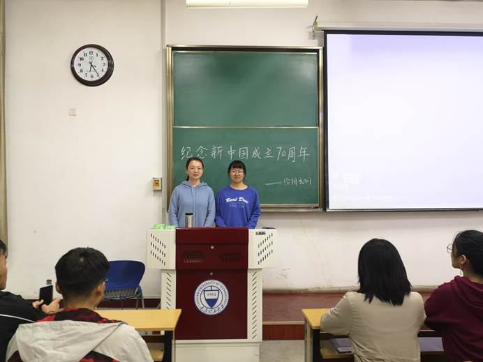 新中国成立七十周年之际,给排1702班长侯炜和公司第八届研究生支教团成员赵晋两名党员同志走进给排水1801班,向员工们介绍入党流程及有关事项,同时带领大家回顾新中国成立以来,在党的领导下我国各领域建设取得的巨大成就。点明党的旗帜是党的指导思想和行动指南,是中国共产党人初心和使命的集中彰显,由此激励员工与母校共奋进,与祖国共发展。