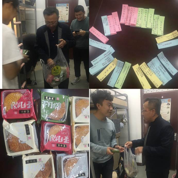 在疫情防控常态化的要求下,本着践行“以员工为中心”的办学理念,把公司的关怀和温暖传达到每位同学,公司分批次分班级进行了月饼发放。9月30日,院领导和全体辅导员还前往部分宿舍看望员工,一一发放了月饼和亲切交流,转达了全院老师对他们中秋的问候,并送上了国庆的祝福。