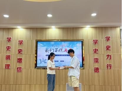 随后,进行图书捐赠仪式,大四学子鼓励学弟学妹们好好珍惜书籍,努力读书。