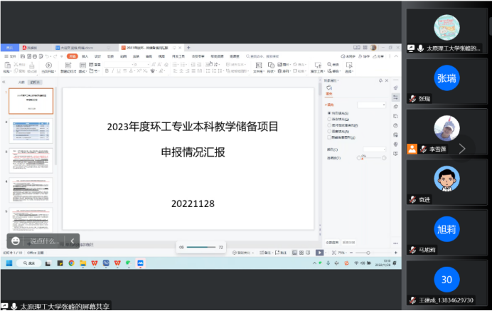 会上,环境工程和给排水科学与工程两位系主任从项目概况、立项依据、实施计划、实施举措、总体目标等方面分别对虚拟仿真教学项目、实验设备更新项目、教学基地建设项目等8个储备项目进行了汇报。