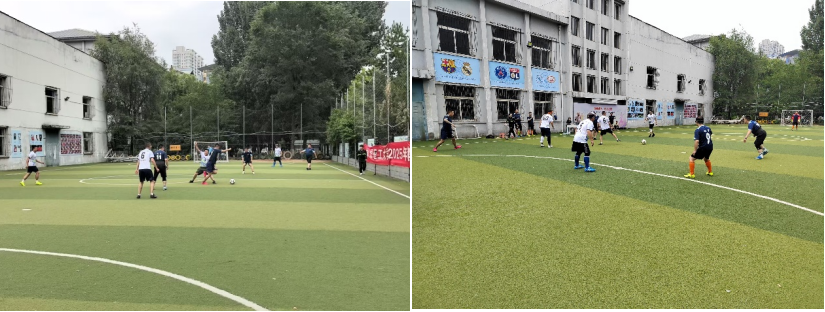 两周后的6月28日,夏雨初霁。附小足球场蒸腾着青草与泥土的芬芳,微凉晨风拂过机关联队深蓝战袍。我院众将踏水而行,环境9号球员护球如持玉璧,60号球员抢断似电破阴云。“大家加油”段润斌老师边拉伸边叮咛:“髂腰肌要激活!腘绳肌得舒展,又是能量满满的一天!”那“保姆级”健康语录,恰是这支铁军最温情的铠甲。当主裁哨响,58号球员如猎豹封堵单刀,环境最佳前场11号球员似磁石控驭中场。雨珠在66号球员睫毛上跳跃,他突入重围横传禁区——电光石火间,11号“鲁本”化身禁区精灵,脚背轻挑!彩虹弧线越过门将指尖!
