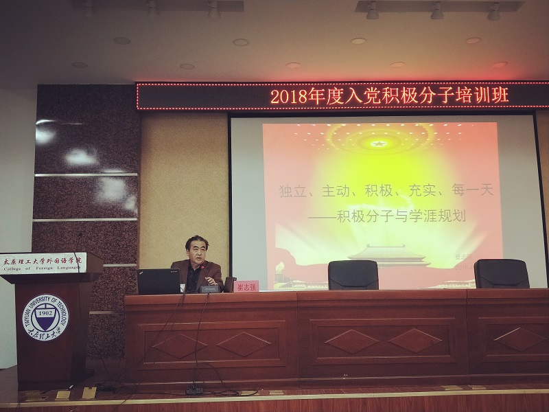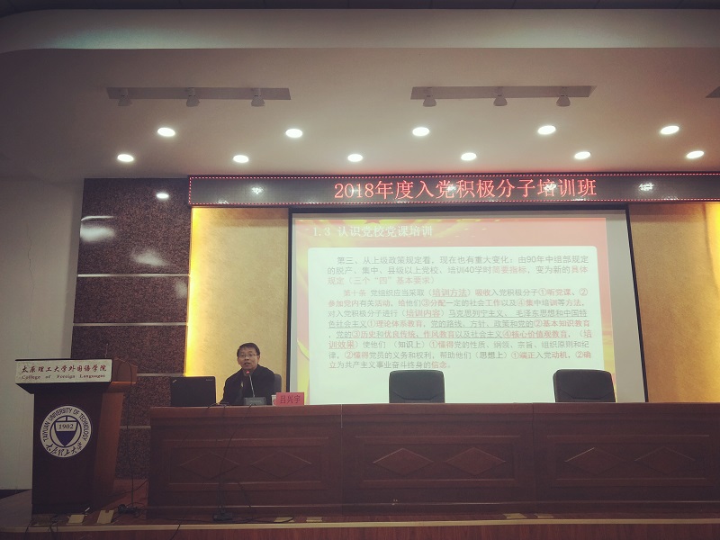 在授课模块,乔运鸿教授为本次参训学员做了第一讲《中国共产党的组织和领导》,主要讲授了中国共产党是如何组织和领导广大人民走向繁荣昌盛的时代,利用引人思考的方式促使同学们深入了解党的指导思想,增强同学们对党的认识;王继明讲授的《坚定“四个自信”,为实现中国梦而奋斗》,全面阐述了“四个自信”的深刻内涵和坚持“四个自信”的重大意义,给学员们留下了深刻的印象;吕兴宇老师《追求政治进步,端正入党动机》,他从“明确三重身份,认清时代潮流”等方面阐述了党员培养发展的过程,并督促学员要“学好党章,上好党课,确保党课质量”,强调了始终保持入党动机纯洁性和持久性;孙转科老师的《何以解忧,唯有改革》,以幽默风趣的语言为学员讲述了 “二级火箭理论”、“四大思潮”、“十一个分歧与斗争”、“五个团队”等多个有关党史发展的主题,并对党内发生的腐败案例进行了原因分析;崔志强老师的最后一讲《独立、主动、积极、充实每一天》,提出了积极分子应该如何对自己的生涯进行规划,如何端正自己的世界观、人生观、价值观,让同学们深刻地认识到了该如何成为一名合格的共产党员。
