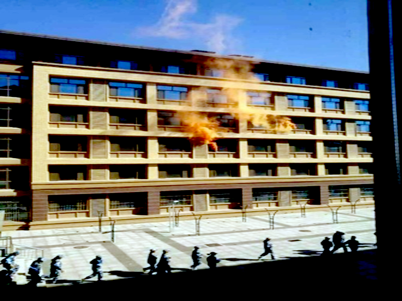 紧急疏散演练:模拟太原晋中发生6级地震,全体参演人员紧急避震,继而开始向安全区紧急疏散,地震引发某公寓楼某宿舍火灾,接到报警后,消防人员前去灭火,并对被困人员进行救援。公司工作人员引导全体新生在安全区集合完毕,清点人数无误后,宣布演练结束。