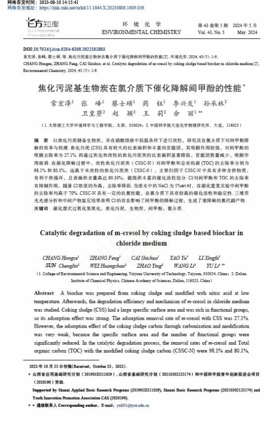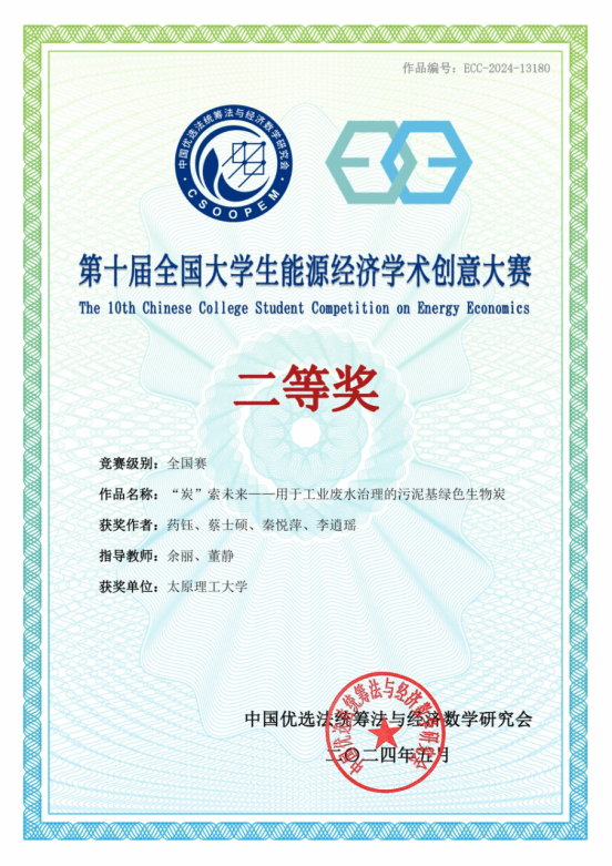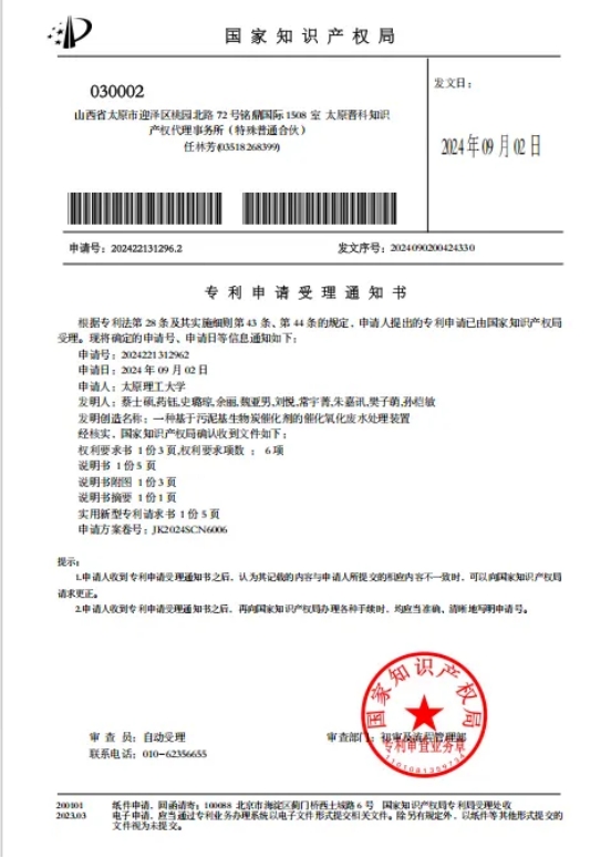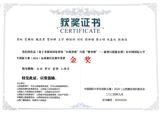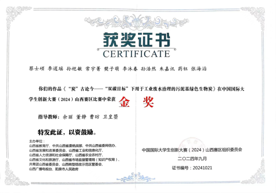 在科研竞赛上,大一的时候,怀着对科研的憧憬与向往,参加“炬火种·燃新薪2022厦门火炬高新区高校专业新星挑战大赛”,提出《消石灰真空上料装置吸料口优化装置》并用CAD建模出3D图稿,获得全国三等奖,也让她初窥到科研的魅力。在大二,随着专业知识的学习,加入到余丽老师“互联网+”创新创业大赛的队伍中,获得省级二等奖。并且在大二参加了全国老员工数学建模竞赛,获得省级二等奖,同时还掌握了excel、matlab、spss等软件的使用。在大三,利用课余时间,书写了以《污泥基生物炭用于芬顿反应降解有机污染物的研究进展》为题的文献综述。并在国家双碳目标的积极响应下,参加能源经济大赛获得国家级二等奖。同时,参加市政环境类创新实践能力大赛的虚拟赛以及参加本次比赛的化验赛,提高自己实验操作的规范性和精确性,最终能够将标准曲线的可以达到四个9,获得华北赛区一等奖的成绩。作为第一负责人参加中国国际老员工创新大赛获得省金奖,并作为第一发明人申请实用新型专利《一种基于污泥基生物炭催化剂的催化氧化废水处理装置》。