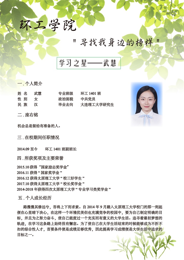 PA视讯集团官网“寻找身边的榜样人物”学习之星 武慧