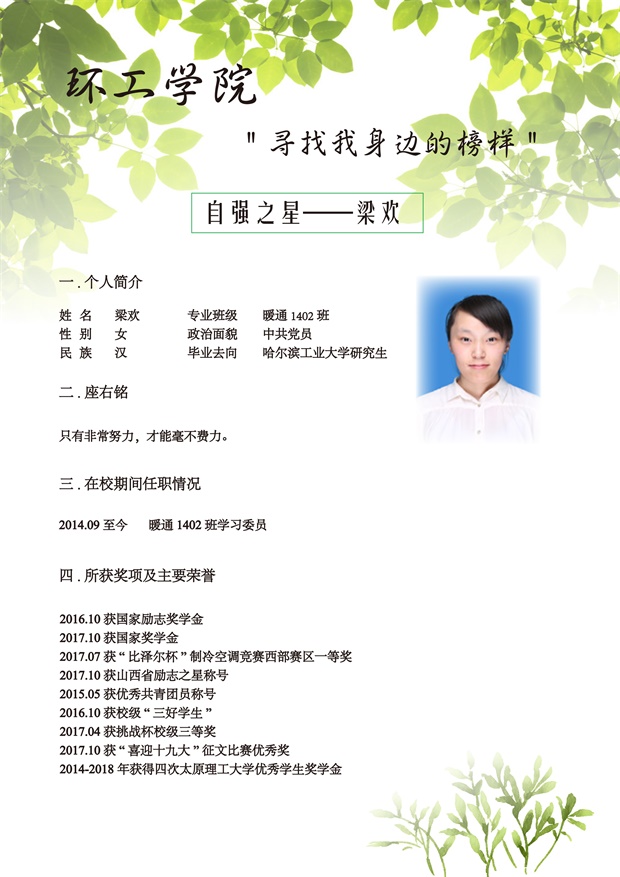 PA视讯集团官网“寻找身边的榜样人物”自强之星 梁欢