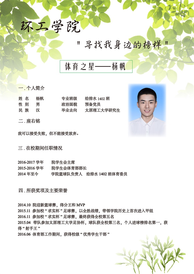 PA视讯集团官网“寻找身边的榜样人物”体育之星 杨帆
