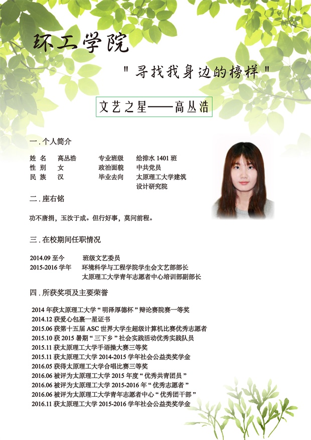 PA视讯集团官网“寻找身边的榜样人物”文艺之星 高丛浩