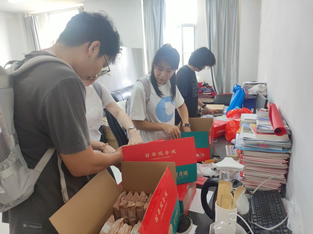 公司为全体员工精心准备了月饼、苹果、酸奶等慰问品,表达了公司“大家庭”对同学们的关心关爱,让同学们身处异乡也能感受到来自“家”的温暖。